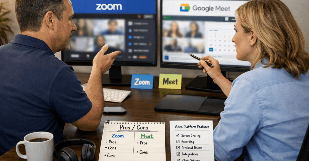 Choose Google Meet for simplicity, choose Zoom for capability. Meet removes setup friction, fits neatly inside Google’s suite, and covers most internal meetings without ceremony.